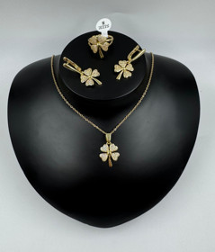 Bijuteriya dəsti kulonlu zəncir, sırğa və üzük D5, paslanmayan polad |