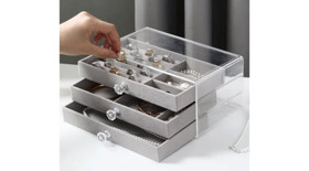Zinət əşyaları və aksesuarlar üçün orqanayzer, 3 mərtəbəli, şəffaf, boz - OHM641-8-2 |