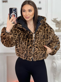 Qadınlar üçün iki üzlü kürk MFF55, qəhvəyi, süni xəz/poliester, ölçü XL |