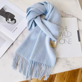 Açıq Mavi Kaşmir Şərf Yumşaq və İsti, Saçaqlı Klassik Model |