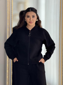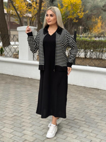 Qadınlar üçün gündəlik don və jaket nm030, qara, trikotaj, ölçü 3XL |