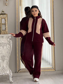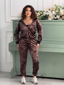 Qadınlar üçün şalvarlı dəst uqg165, qəhvəyi, velür, ölçü XL |