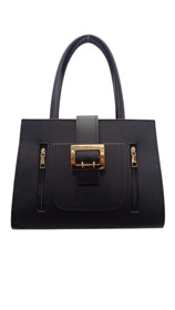 Süni dəri qadın çiyin çantası, qara, qızılı zamok və kəmər detallı - BNE-480 |
