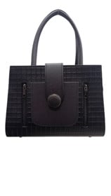 Çiyin çantası qadınlar üçün, qara, tor naxışlı, ön cibli, süni dəri - BNE-481 |