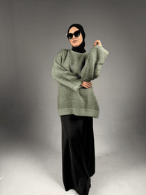 Qadınlar üçün sviter 3485, yaşıl, trikotaj, ölçü One size |