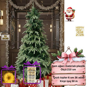 Şam ağacı yeni il üçün RAX004_0631, 210 sm + Şam ağacı oyuncaqları dəsti + Yeni il üçün LED çələng Hədiyyə
