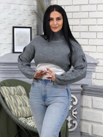 Qadınlar üçün sviter sfl 017-10, boz, pambıq, ölçü One size