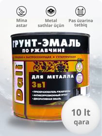 Mina parlaq Dali 3-ü 1-də, metal üçün, pas üzərinə, tez quruyan, qara (RAL 9005), 10 l - DL_EM_qara_10 |