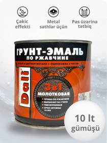 Mina DALI Molotkovlu 3-ü 1-də, çəkic effekti, metal səthlər üçün, pas üzərinə, tez quruyan, gümüşü, 10 l - DL_ML_gümüşü_10 |