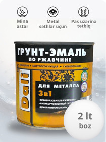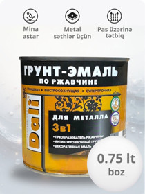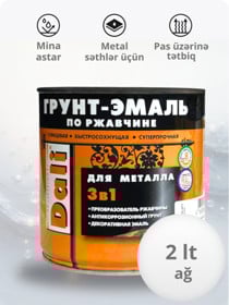 Mina parlaq DALI 3-ü 1-də, metal səthlər üçün, pas üzərinə, ağ (RAL 9010), 0.75 l - DL_EM_ağ_0.75 |