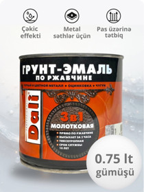 Mina DALI Molotkovlu 3-ü 1-də, çəkic effekti, metal səthlər üçün, pas üzərinə, tez quruyan, gümüşü, 0.75 l - DL_ML_gümüşü_0.75 |