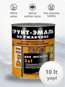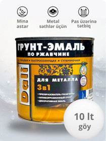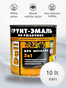 Mina parlaq Dali 3-ü 1-də, metal səthlər üçün, pas üzərinə, tez quruyan, sarı (RAL 1021), 10 l - DL_EM_sarı_10 |