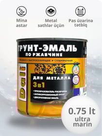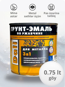 Mina parlaq DALI 3-ü 1-də, metal səthlər üçün, pas üzərinə, tez quruyan, göy (RAL 5005), 0.75 l - DL_EM_göy_0.75 |