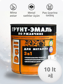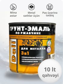 Mina Dali 3-ü 1-də, metal səthlər üçün, parlaq, tez quruyan, ağ (RAL 9010), 10 l - DL_EM_ağ_10 |
