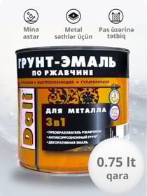 Mina DALI 3-ü 1-də, metal səthlər üçün, parlaq, tez quruyan, qara (RAL 9005), 0.75 l - DL_EM_qara_0.75 |