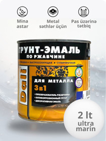 Mina Dali 3-ü 1-də, metal səthlər üçün, parlaq, tez quruyan, göy (RAL 5005), 2 l - DL_EM_göy_2 |