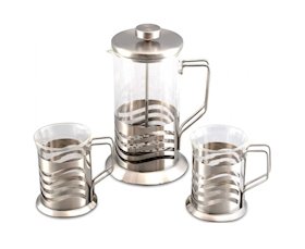 Çay dəsti Gipfel Glacier-Toulouse 7180, 4 fincan tutumlu şüşə çaynik/600 ml və 2 qəhvə krujkası 200 ml, dəmir çərçivə