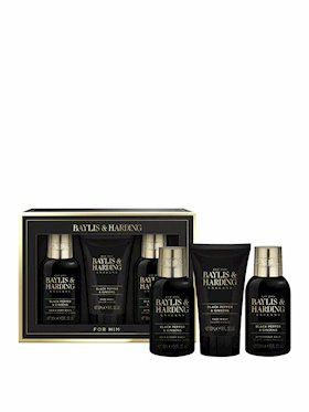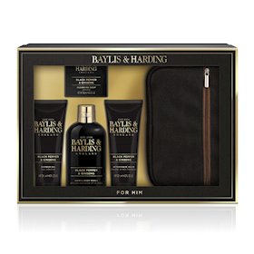 Dəst Baylis & Harding Black Pepper & Ginseng şampun-gel 300 ml + duş üçün gel 130 ml + sabun 150 q + təraş sonrası balzam 130 ml + çanta |