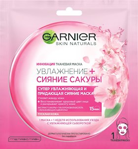 Parça maska Garnier "Nəmləndirmə + Sakura parıltısı", super nəmləndirici və parlaqlıq verən, solğun dəri üçün |