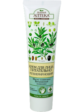 Üz üçün krem "Зеленая аптека" yeniləyən və qidalandıran ZEYTUN YAĞI + VITAMİN KOMPLEKSİ A + B7 + E |