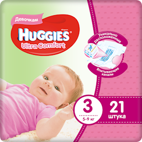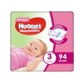 Uşaq bezi Huggies Ultra Comfort 3 qızlar üçün, 5-9 kq, 94 əd. |