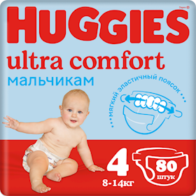 Uşaq bezi Huggies Ultra Comfort 4 Oğlanlar üçün, 8-14 kq, 80 ədəd |