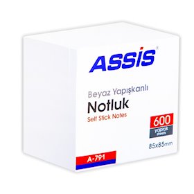 Qeydlər üçün kağız Assis A-791, 85x85 mm, 600 vərəq, ağ |