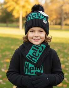 Oğlanlar üçün papaq + şərf + əlcək dəsti sz0010, qara, yun, 5-6 yaş |