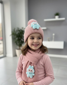 Qızlar üçün papaq + şərf dəsti sz014, çəhrayı, yun, 5-11 yaş |