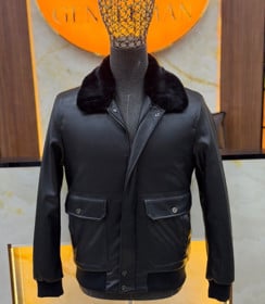 Xəz yaxalıqlı gödəkçə kişilər üçün, qara, dəri, ölçü L |