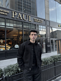 Qısa palto Oversize PL718 kişilər üçün, qara, kəşmir, ölçü S