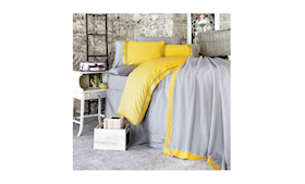 Yataq dəsti Clasy Kharma V1, ikinəfərlik, rəsmsiz, yorğan üzü 200x220, mələfə 240x260, yastıq üzü 50x70, boz/sarı (8680628688631) |