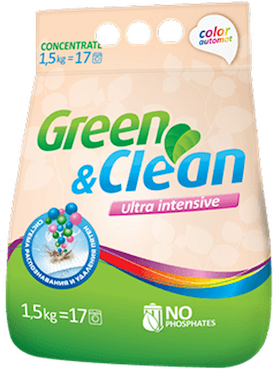 Yuyucu toz Green&Clean Professional Ultra Intensive, rəngli paltar üçün, avtomat, 1.5 kq |