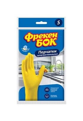 Məişət əlcəyi "Фрекен бок" Universal super həssas S ölçülü, 1 cüt, lateks, sarı |