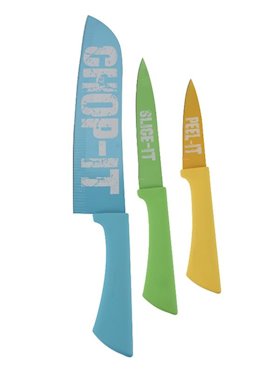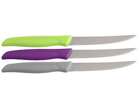 Bıçaq dəsti Excellent Houseware, 3 hissə, baş şahpaz bıçağı 34 sm, universal bıçaq, 25 sm, tərəvəz bıçağı 21 sm, polad, mavi, yaşıl, sarı |