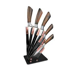 Bıçaq dəsti Maestro MR-1414 altlıq ilə, 6 hissə, aşpaz bıçağı, tiyə 20 sm, çörək bıçağı, tiyə 20 sm, universal bıçaq, tiyə 12.5 sm, ümumi təyinatlı bıçaq, tiyə 20 sm, tərəvəz bıçağı, tiyə 8.75 sm, paslanmayan polad, taxta, qəhvəyi |