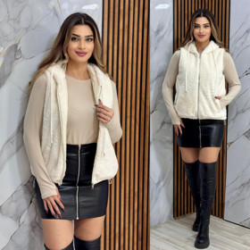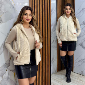 Jilet CHPT021, krem, süni xəz, ölçü One size |