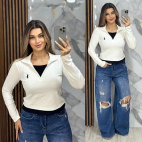 Uzunqol bluz CHPT010-polo, ağ, elastan/pambıq, ölçü One size |