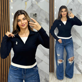 Uzunqol bluz CHPT010-polo, qara, elastan/pambıq, ölçü One size |