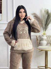 Qadınlar üçün şalvarlı dəst uqg015, qəhvəyi, peluş, ölçü One size |