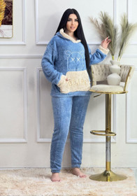 Qadınlar üçün şalvarlı dəst uqg015, boz, peluş, ölçü One size |