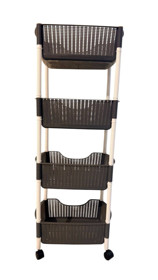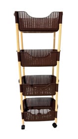 Digər mətbəx ləvazimatları meyvə və tərəvəz saxlama qabı, 4 mərtəbəli, təkərli, həsir model, rəngi qəhvəyi, ölçüləri: en-27, uzun-44, hündürlük-114 sm - TW-RZ564