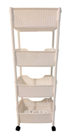 Meyvə və tərəvəz saxlama qabı, 4 mərtəbəli, təkərli, həsir model, ağ, ölçüləri: en-27, uzun-44, hündürlük-114 sm - TW-RZ566