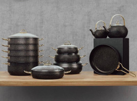 Qazan dəsti, qara, 19 parça, Türkiyə istehsalı, yüksək keyfiyyətli, 4.5 mm qalınlıq, Alman texnologiyası (Jreblon), sandıq qutuda - TW-RZ582