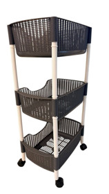 Digər mətbəx ləvazimatları meyvə və tərəvəz saxlama qabı, 3 mərtəbəli, təkərli, həsir model, qara, ölçüləri: en-27, uzun-44, hündürlük-82 sm - TW-RZ563