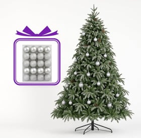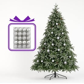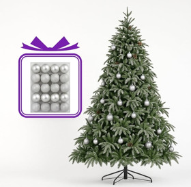 Yeni il üçün şam ağacı MRK103, 150 sm + Oyuncaq dəsti, gümüşü, 24 əd Hədiyyə |