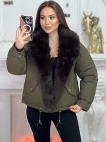 Qadınlar üçün qış gödəkçəsi nm0050, xaki, süni xəz, ölçü XL |