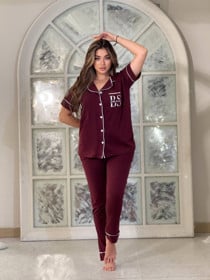 Qadınlar üçün şalvarlı pijama dəsti nm0017, qəhvəyi, pambıq, ölçü XL |