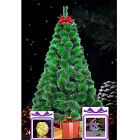 Yeni il üçün şam ağacı 011-RAX008-1201, yaşıl, qarlı, 90 sm + Led çələng 10 m + Oyuncaq dəsti, qırmızı, 5 sm, 32 əd Hədiyyə |