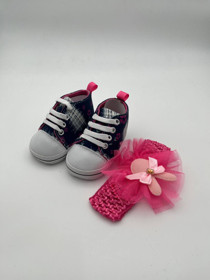 Qızlar üçün papışlar + saç üçün çənbər AK-62, qara/çəhrayı, ölçü 13 |